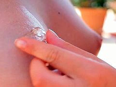 • The sisters strip down the girls and start out with a threesome of hot pussy licking and fingering on a tarp next to the homemade pool that they'll be taking a dip in once they're done, cuz this lesbian action is hot.